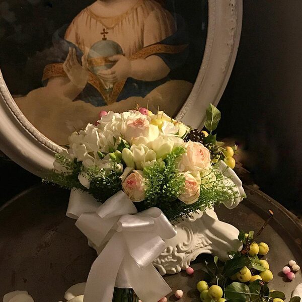 大型ブーケレッスンでは両手で持ちきれないくらいの大きなブーケを、マリアージュのレッスンでは、ブーケ・ド・マリエとミニテーブル装花を製作します。野菜と果物を使ったコンポジションでは、ムッシュの得意とする果物や野菜を使ったアレンジメントを習います。ご希望のレッスンをお知らせください。