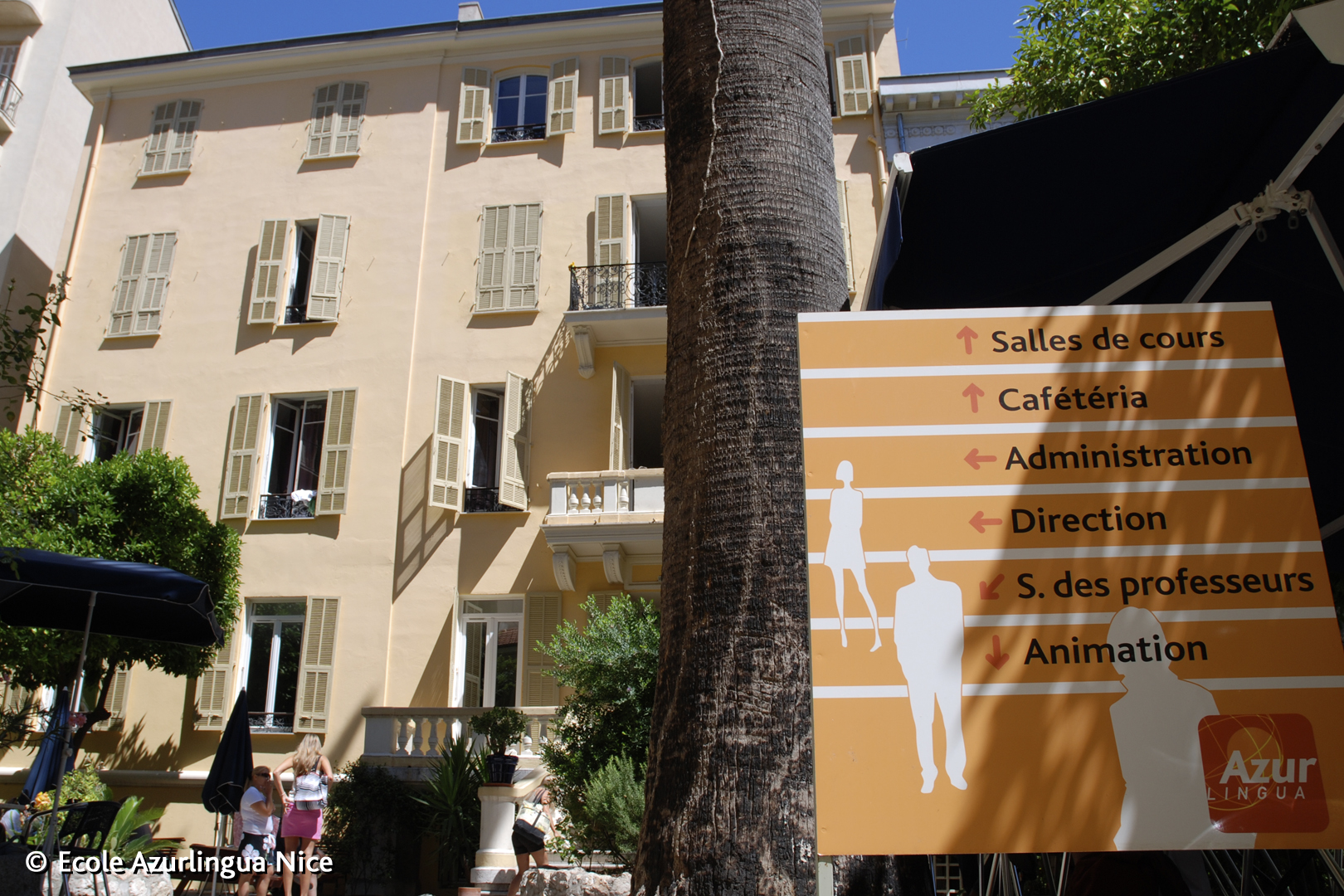 外国人のためのフランス語教育機関として約30年の経験をもつアズールリンガ。学校の敷地内には寮も完備している。気候のよい時期には開放的な雰囲気の中庭に設置された屋外教室で授業を行うこともあるなど、南仏らしい雰囲気を持つ比較的大きな語学学校。
