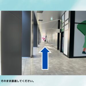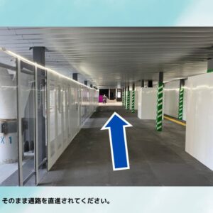 Une fois que vous avez pris l’escalier roulant jusqu’au 3ème étage, tournez à droite et traversez le passage (la psserelle) piéton en construction.