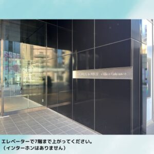 Prenez l’ascenseur jusqu’au 7ème étage. (Il n’y a pas d’interphone ni de barrière de sécurité à l’entrée principale, alors veuillez simplement entrer).