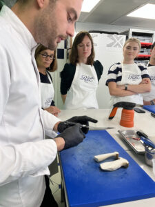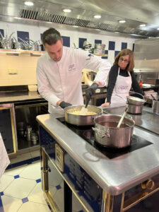 参加者は8人までの少人数制なのでアットホームな雰囲気で授業が進みます。この日はアメリカから参加している4人家族、フランス人の女性が2人と中国籍の生徒さん、そして日本からの私という構成でした。シェフがフランス語で説明するのをすぐに英語の通訳兼アシスタントさんが翻訳してくれるのでフランス語ができなくてももちろん大丈夫です。