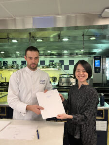 料理の箱詰め作業が終了したらシェフから直接サイン入りの修了証書をもらってレッスンは終了です。