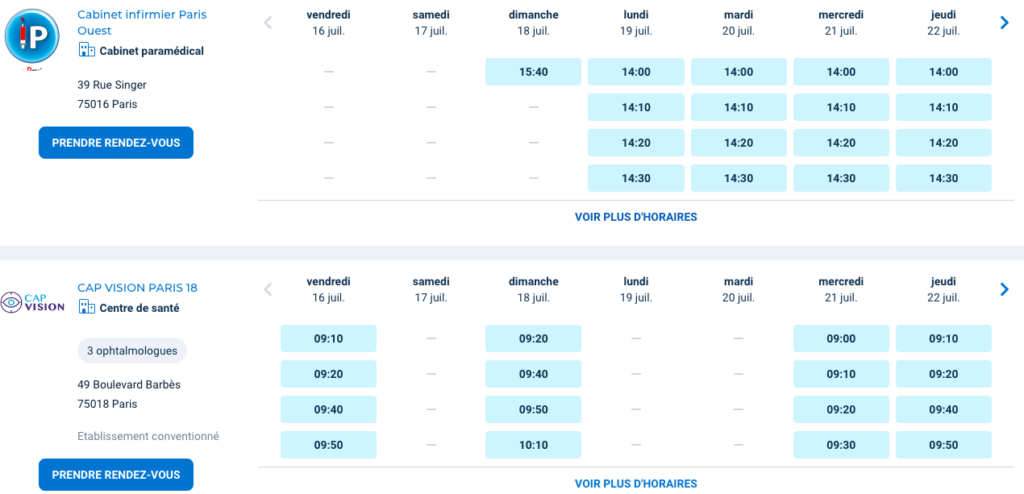 もしDOCTOLIBで予約を取ると表示されている場合にはDOCTOLIBという病院や医療系ラボのオンライン予約サイトに登録して予約を取るようにしましょう!
