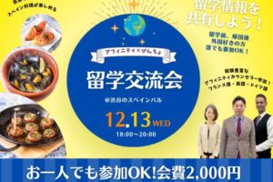12月18日(水)18時から留学交流会の開催を予定しております!これからフランスへの渡航をご検討中のお客様同士の交流や、留学から帰国された方のお話を聞いてみたい、海外に興味がある方との交流など是非この機会にご参加ください。