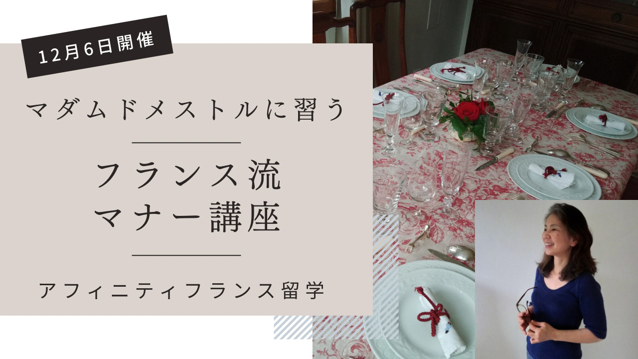 【終了】12月6日(水)【東京】マダム・ドメストルに習うフランス流マナー講座
