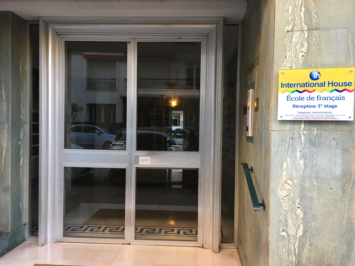 英国で外国人向けの語学学校として1953年に設立されたインターナショナルハウスのニース校。世界40カ国に分校を持つ外国語教育のエキスパート。ニース校は1985年に開校し、世界各国からの学生を受け入れている。2015年にニースの中心に引っ越しをし、センターからのアクセスもよい。