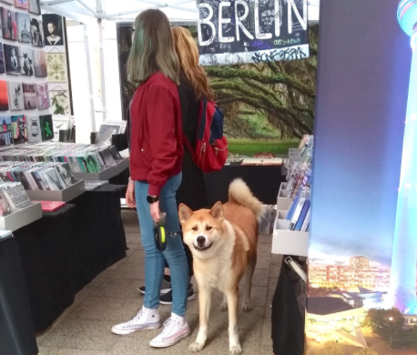 画像(左)/シュプレー川沿いの蚤の市。最近ドイツでは日本犬がブームでここでも2匹見ました!