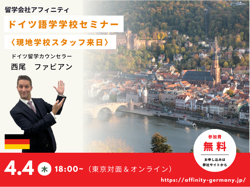 今回は、現地ドイツの語学学校からゲストをお招きして、アフィニティ東京オフィスでドイツ語学学校セミナーを開催いたします。