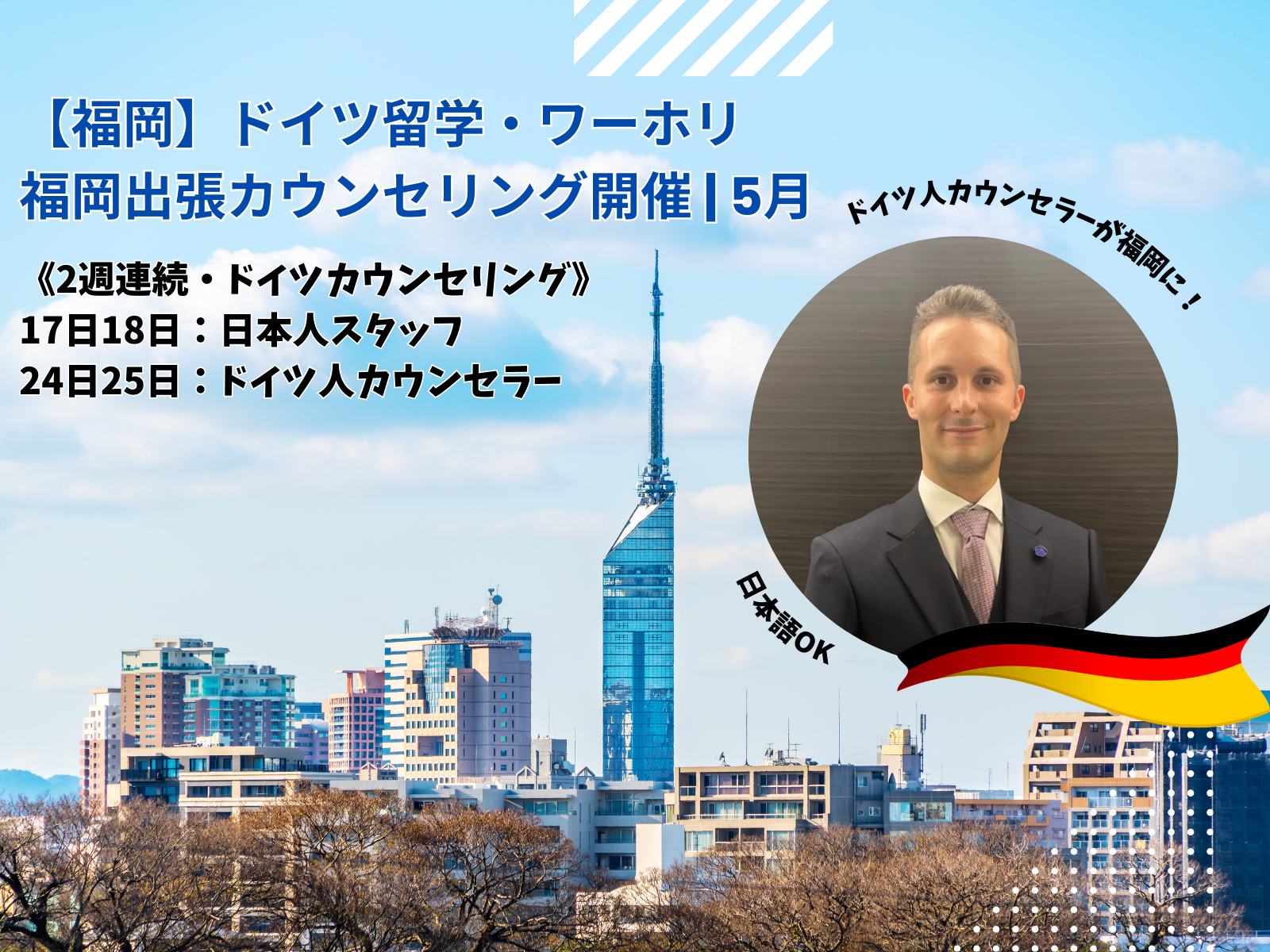 上記の日程で、ドイツ担当カウンセラーが福岡オフィスにて出張カウンセリングを開催いたします。